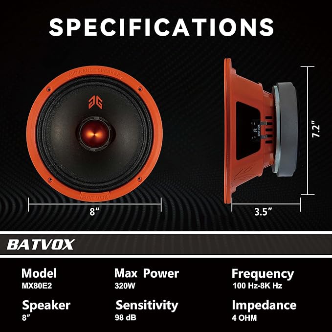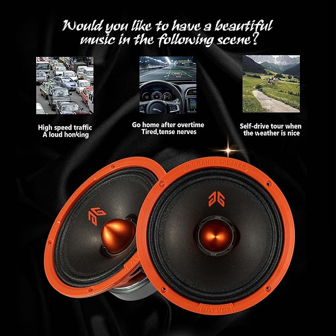 - Powerful Midrange Performance: The 8 Inch Midrange Loudspeaker with Orange Bullet design delivers an RMS power of 160W and a maximum power handling of 320W, with a peak power capability of 640 watts. This ensures robust midrange sound reproduction, perfect for filling any venue with rich, detailed audio.