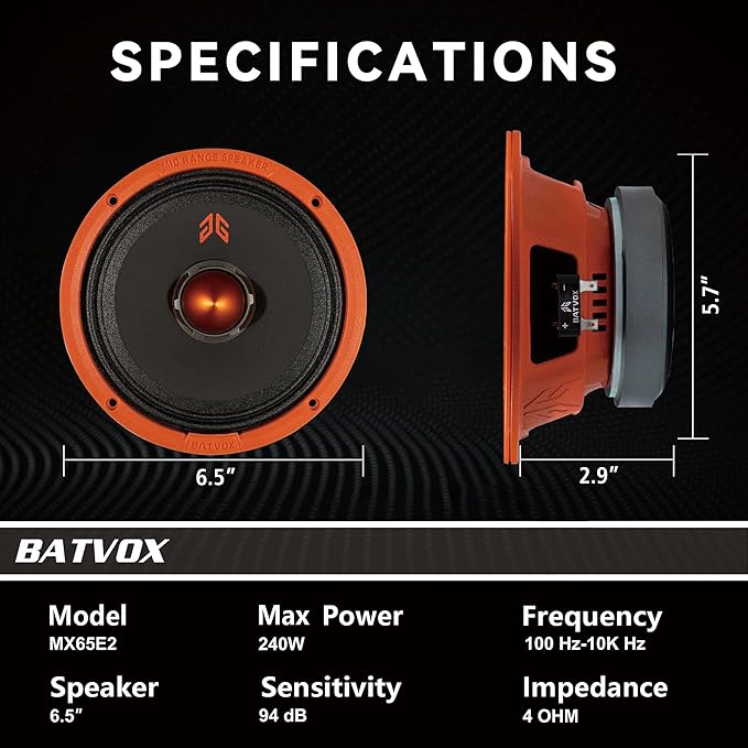 - Powerful Midrange Performance: The 6.5 Inch Midrange Loudspeaker with Orange Bullet design delivers an RMS power of 120W and a maximum power handling of 240W, with a peak power capability of 480 watts. This ensures robust midrange sound reproduction, perfect for filling any venue with rich, detailed audio.