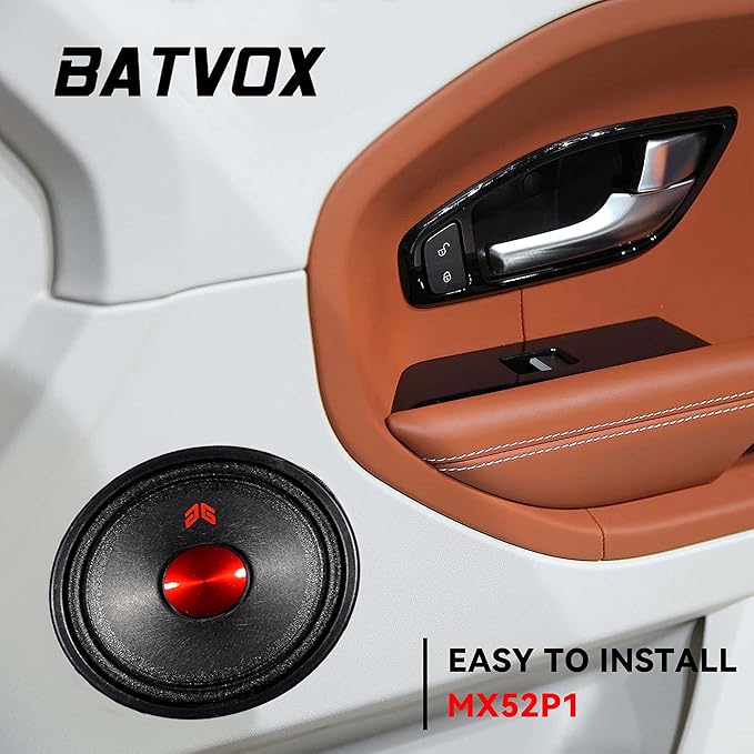 MX52P1 Midrange Loudspeaker 5" Red Dust Cap, 160W Max, 4 Ohms, Premium Quality Audio Door Speakers for Car or Truck Stereo Sound System, Black (2 Speaker)
