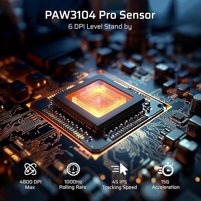 - Reliable PAW3104 Sensor — Equipped with a PAW3104 sensor, LTC GM024 mouse delivers precision with 1000Hz polling rate, 15G acceleration, and 45 IPS tracking speed. Customize 6 DPI levels via software for pinpoint accuracy in every game