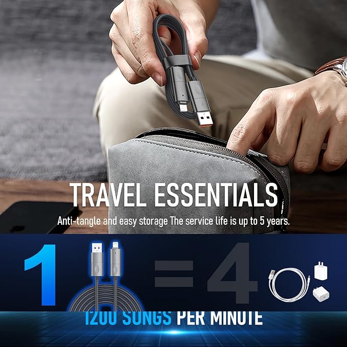 - 【ONE CABLE FOR ALL DEVICES】The usb cables design with four ports-USB A to USB C,USB A to L,USB C to USB C,USB C to L.which offers a complete solution for fast charging and data transfer.no need to carry muiltiple cables for a variety of USB devices.Additionally,the attached cable tie makes it more convenient to store and travel!