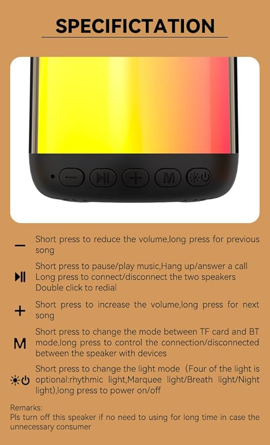 - TWS Dual-Speakers Connection Technology produces true wireless Stereo sound quality, Dual-Speakers double connections creates double enjoyment.