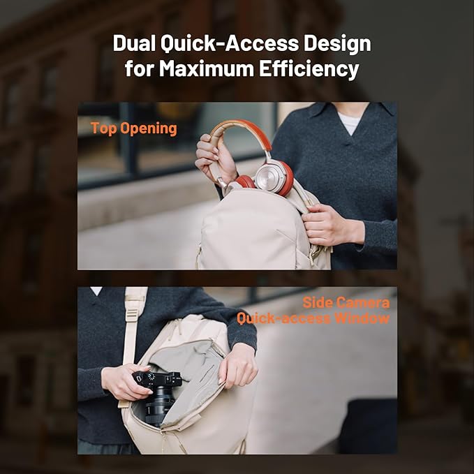 - Dual Quick-Access System: Features a 180° flip-open lid for easy packing. Grab gear instantly via the side-entry camera compartment or top-opening daily-use pocket. Includes removable padded dividers for customizable storage.
