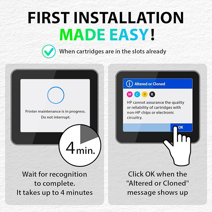 - Leakage Prevention: To ensure a clean installation, please hold the ink cartridge upside down for 1-2 minutes and wear gloves (included in the packaging) before installing.