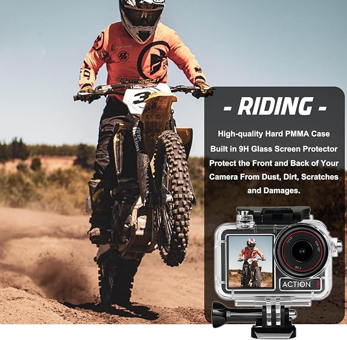 - Durable and Reliable: The case is made of high-quality PMMA hard plastic, protects your camera from dust, scratches, mud, dirt and debris during extreme activities.The high-definition 12H tempered glass protector on the front lens of the camera not only protects the lens from bumps and scratches, but also allows you to take more realistic and beautiful photos.