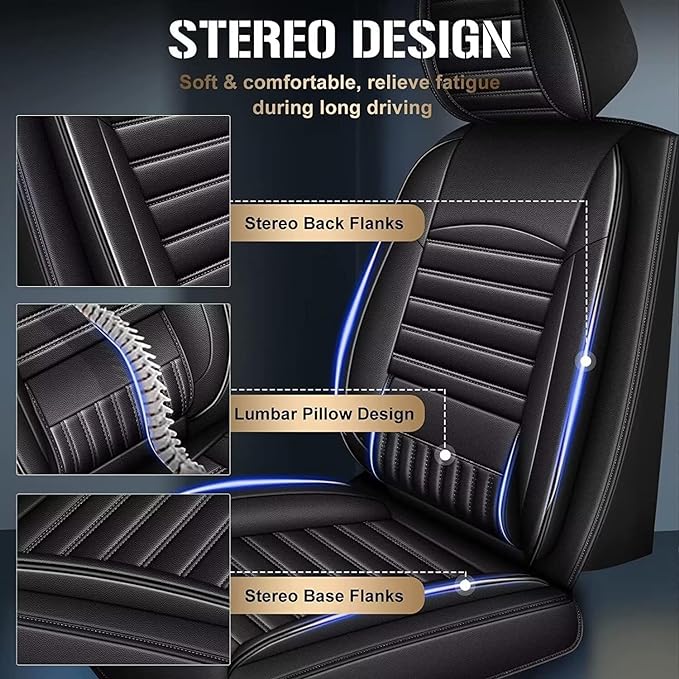 - 【Leatherette Seat Covers】Our Seat covers are made of natural environmental faux Leatherette. high-elastic sponge,heat-pressed non-woven fabric and non-slip base fabric,allows you to sit for a long time without getting tired.