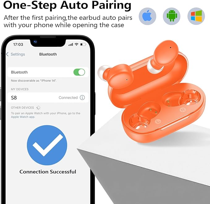 - Bluetooth 5.3 for Fast Pairing: The wireless earbuds utilize the latest Bluetooth 5.3 technology for faster transmission speeds, simply open the lid of the charging case, and both earphones will automatically connect. They are widely compatible with iOS and Android.