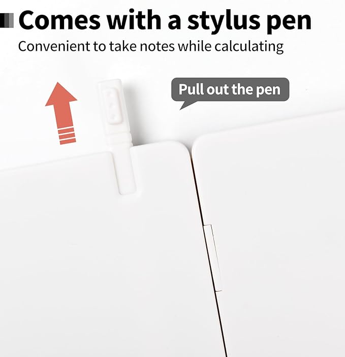 - 【Lightweight and Portable】This is a lightweight calculator with a writing pad and foldable design, and it weighs only 3.73 ounces. It is portable that you can carry it anywhere and it can be removed and used immediately when needed.