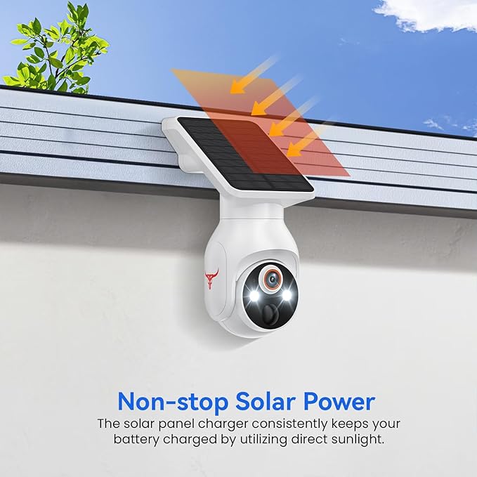 1080p WiFi Security Camera with Solar Panel, Battery Powered, Pan Tilt, AI Motion Detection, Night Vision, 2-Way Talk, IP65, Cloud Storage (Sold Separately), 2.4GHz WiFi Only