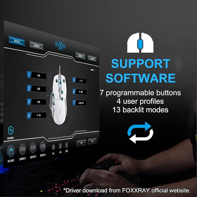 - Support Software: 7 programmable keys, allowing users to set macros and customize key functions via driver software, catering to personal gaming preferences. The driver can be downloaded from the official website. (Note: The driver only supports the Windows operating system.)