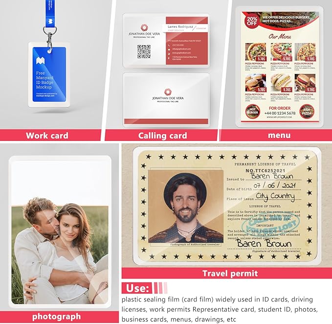 - Precise Size:Ideal for 3×5" photos, business cards, credit cards, IDs, and more. Easily create laminated labels with cardstock and seal them quickly for a professional finish