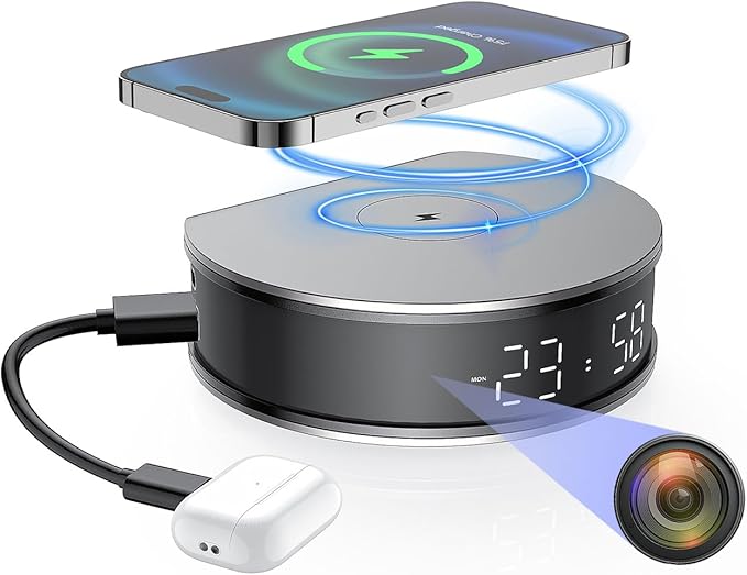 LIZVIE Clock Spy Camera Charger, 15W 1080P WiFi Camera - Mini Wireless Nanny Cam with Night Vision - Indoor Home Security Surveillance.