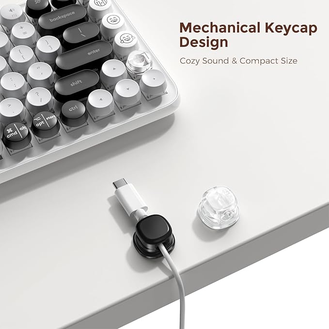 - 【Mechanical Keycap Design】Our spring cord organzier holder clips is designed with a small and exquisite look like a mechanical keyboard round keycaps. Combine with the unique design of the spring's 60° rotation shaft and thoughtful angled opening, allow you to place and remove your phone charging cords, HDMI cords, household wires qucikly and securely with just one hand.