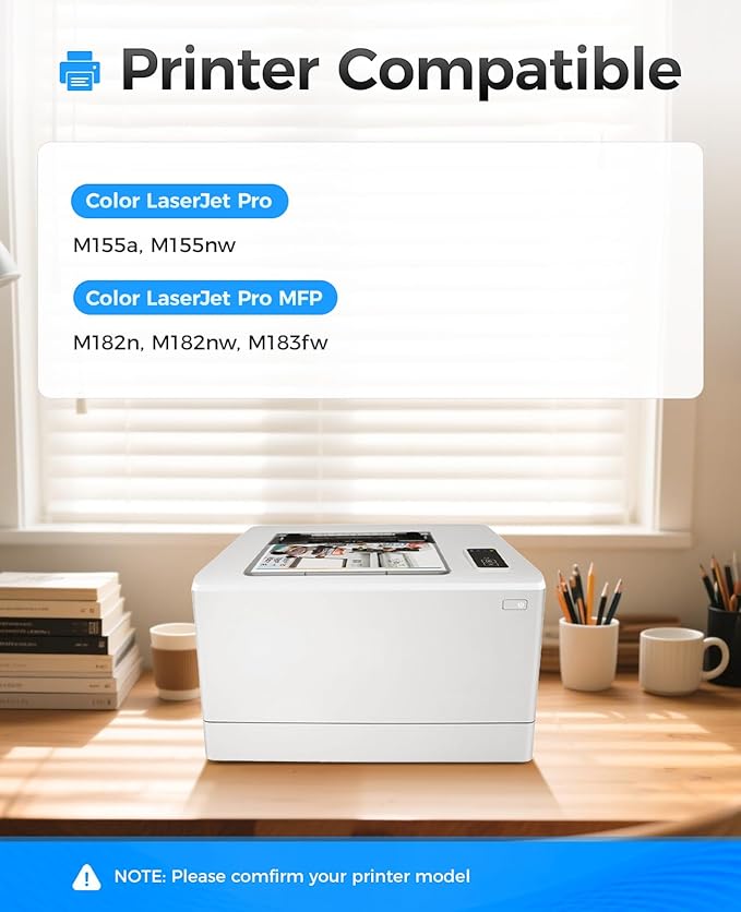 - Compatible Printers: Compatible with HP Color LaserJet Pro M155a M155nw, Color LaserJet Pro MFP M182n M182nw M183fw Printer.