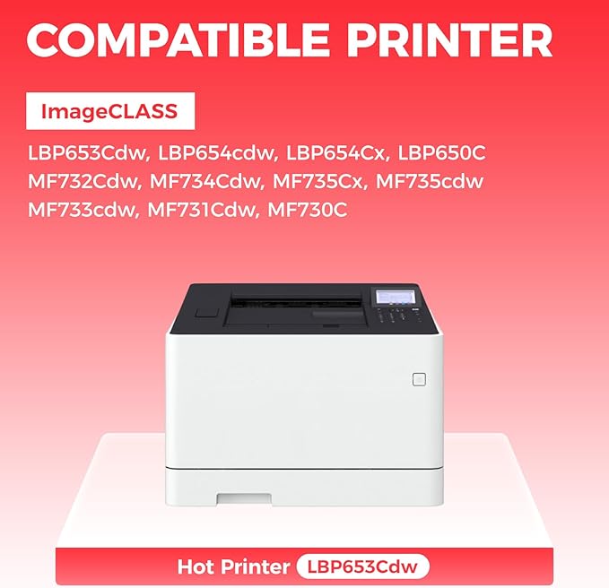 - Compatible Printers: Compatible with Canon Color imageCLASS LBP653Cdw LBP654cdw LBP654Cx LBP650C MF732Cdw MF734Cdw MF735Cx MF735cdw MF733cdw MF731Cdw MF730C laser printers.