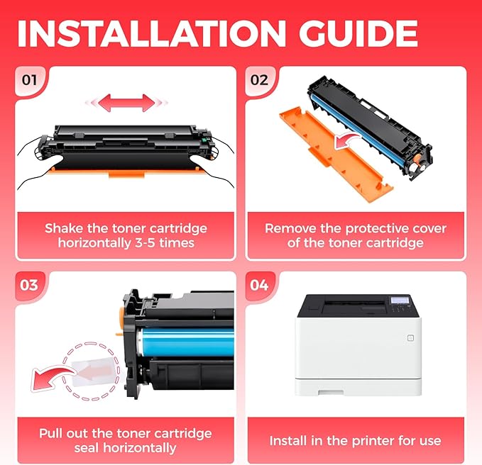 - The latest chip version: The JCTONER toner cartridges are equipped with the latest version of built-in chips, ensuring perfect compatibility between each toner cartridge and the printer. This enables you to print efficiently while maintaining stability and reliability, making installation convenient without the need for manual adjustments. All JCTONER toner cartridges have undergone strict quality testing and have obtained ISO9001 certification. High-quality toner cartridges can meet the demand for high printing volume. The fine toner ensures clear and stain-free printing results and extends the lifespan of the printer. You can purchase with confidence.