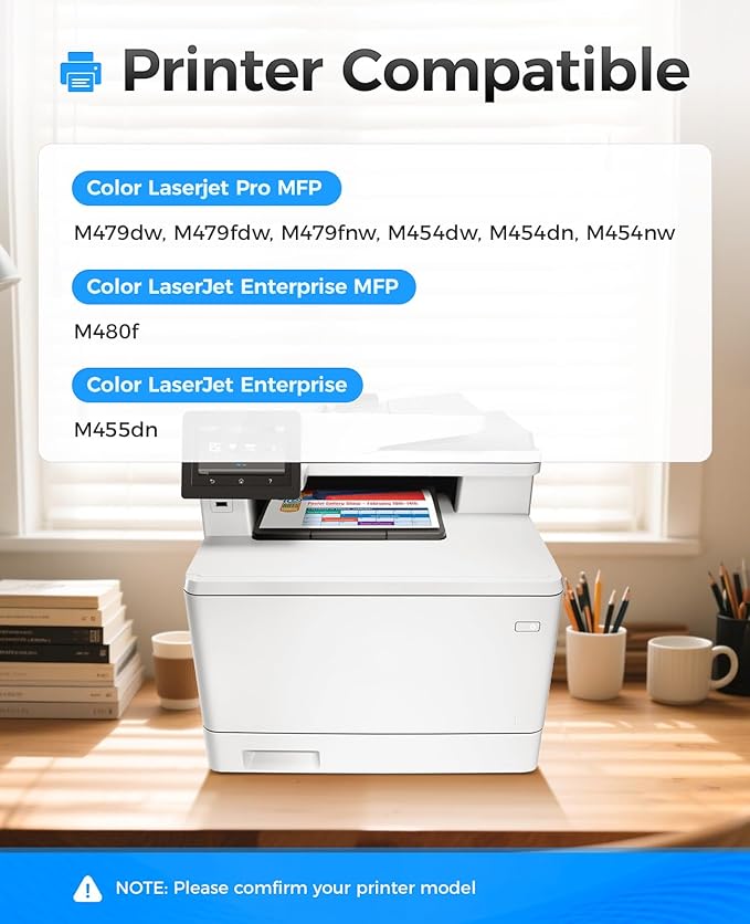 - Compatible Printers: Compatible with HP Color Laserjet Pro MFP M479dw M479fdw M479fnw M454dw M454dn M454nw; Color LaserJet Enterprise MFP M480f M455dn Printer.