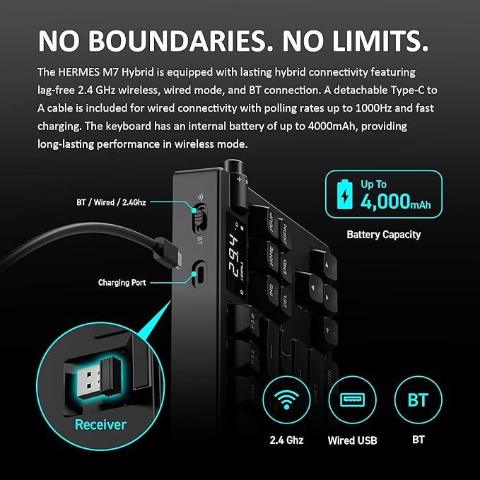 - Special Feature : 3 Mode(Wired/2.4G/BT), 5-Layer Gasket Structure, Customizable RGB Backlit, Digital Display with Software, Hot-Swappable Linear Switch 3 Mode(Wired/2.4G/BT), 5-Layer Gasket Structure, Customizable RGB Backlit, Digital Display with Software, Hot-Swappable Linear Switch