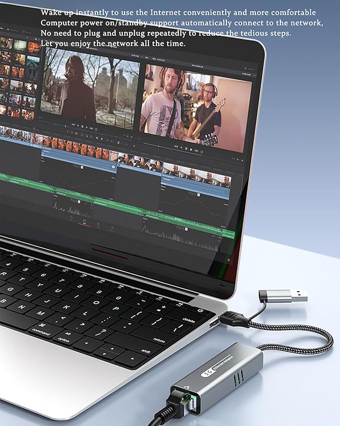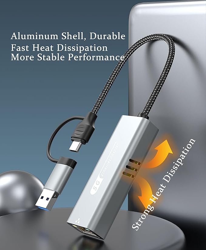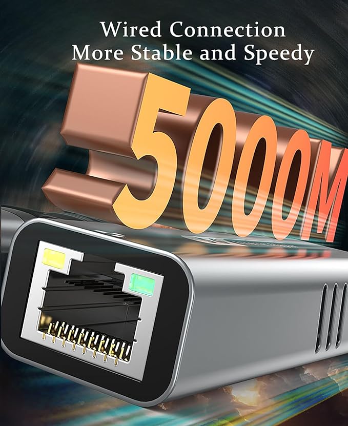- USB 3.2 to 5Gbps Ethernet Adapter:Experience ultra-fast network speeds of up to 5000Mbps (5Gbps), five times faster than traditional Gigabit Ethernet adapters. Backward compatible with 10/100/1000/2500Mbps networks, this adapter ensures faster file transfers, smoother video conferences, and seamless media streaming. Perfect for demanding network environments