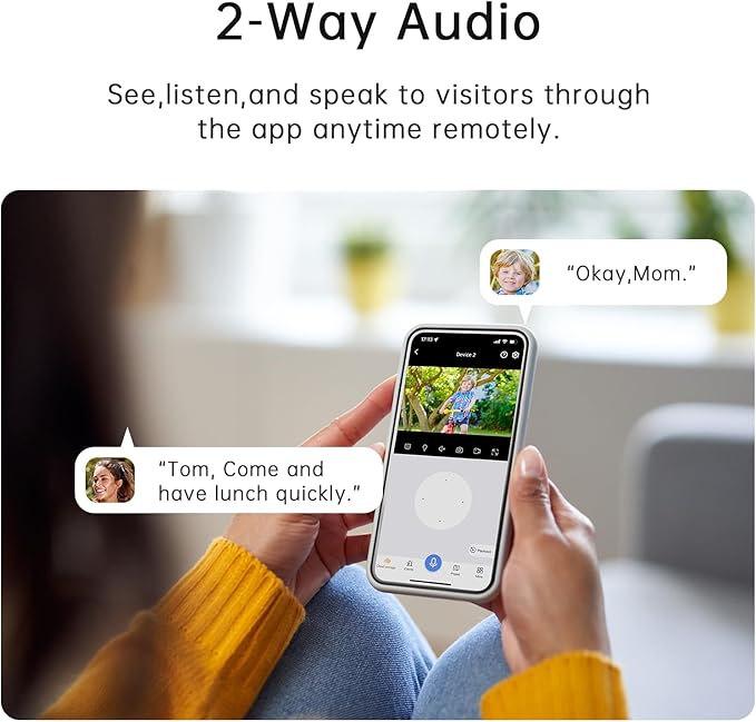 - Talk & Share with Two-Way Audio: Built-in mic and speaker let you communicate in real time. Share access with family for everyone to stay connected. A must-have for cameras for home security, it also supports customizable alarms