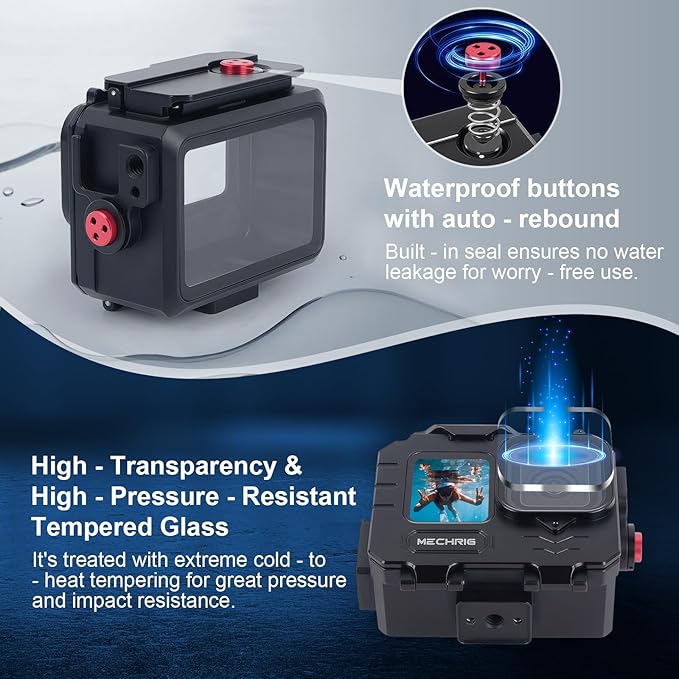 - 80M Deep Waterproof Design: This aluminum waterproof case for GoPro features a deep waterproof innovative design. High-precision anti-crack tempered glass and waterproof button design create a protection system, achieving 80M waterproof performance, protecting GoPro HERO13 Black HERO12 HERO11 HERO10 HERO9 during underwater use