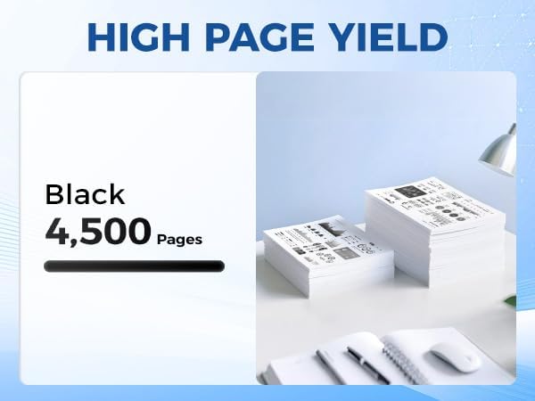 - High Yield Pages: 1,200 pages per black cartridge, up to 2,400 pages with 2 cartridges (A4, 5% coverage).