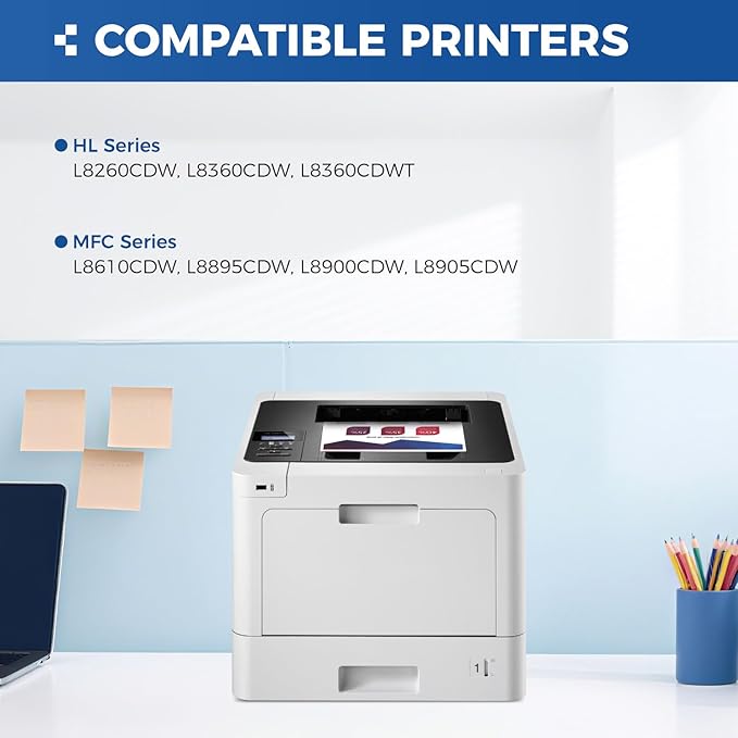 - Compatible Printer: Compatible with Brother HL Series: HL-L8260CDW, HL-L8360CDW, HL-L8360CDWT, MFC-L8610CDW, MFC-L8895CDW, MFC-L8900CDW, MFC-L8905CDW (Please check that your printer model matches the printer model of this toner cartridge before placing an order).