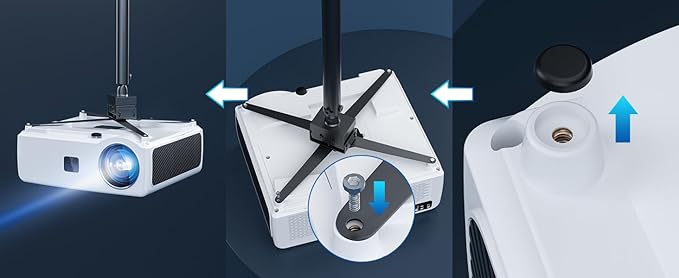 - 【The Sound- 30W HiFi Speakers & DoIby Audio & Lower Noise & 500" display】①➤Built-in 30W HI-FI speakers and 3D DoIby audio, offers a 360 degree surrounding immersive experience,brings you a stunning and loud sound enjoyment for home theater.②➤Provide a high-quality home theater experience without any distractions.It features an adjustable fan level that allows you to set it from level 1-10.The noise level,tested around 1.5ft,ranges from 35dB to 46dB. Enjoy movies,games and sports with crisp and clear sound without any distracting noise.③➤A freely adjustable,extra-large screen size(30""- 500"").Transform your home into a cinematic experience with an ultra-clear large-screen view.