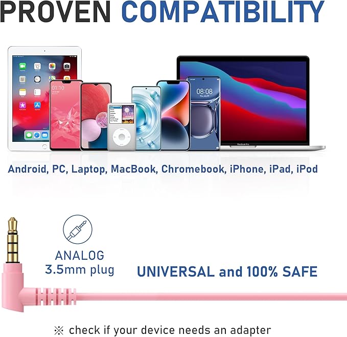 LUDOS ZENITH Wired Earbuds in-Ear Headphones, 2 Years Warranty, Earphones with Microphone, Corded for 3.5mm Jack Ear Buds for iPhone, Samsung, Computer, Laptop, Kids, School Students, Small Ear - Pink