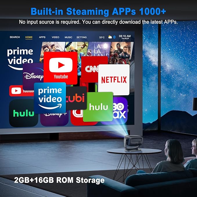 - 【2025 New Upgraded -Built-in App Mini Projector】Weejector 2025 4k projector features a built-in smart OS with 2GB RAM and 16GB ROM, offering access to millions of videos on Netflix, Prime Video, and YouTube. With built-in apps, an App Store, and a browser, you can enjoy endless entertainment without needing additional devices. Create your personal home theater, making it perfect for an immersive viewing experience anytime, anywhere, no extra gadgets needed for full functionality.