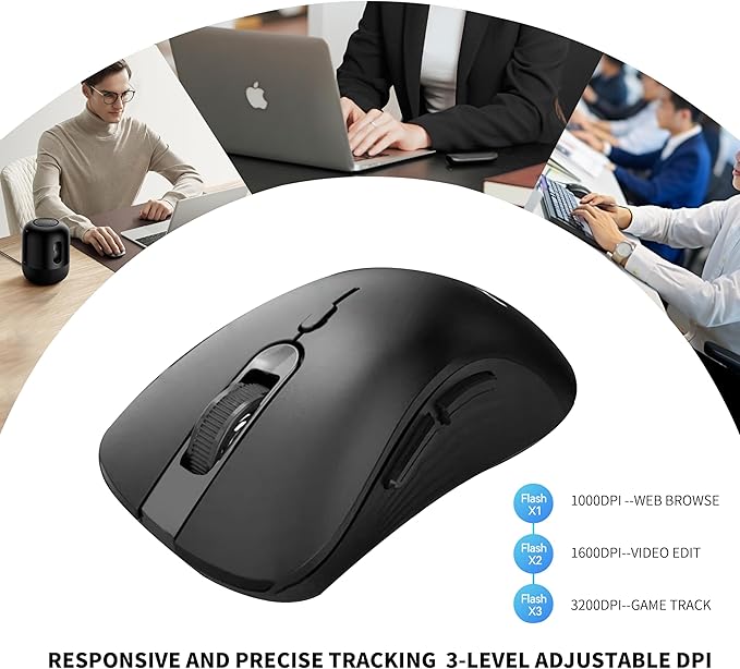 - 3-Level DPI Precision Control:Switch between 1000/1600/3200 DPI on demand for pixel-perfect cursor accuracy on wood, plastic, and fabric surfaces (Note: Not optimized for glass surfaces)