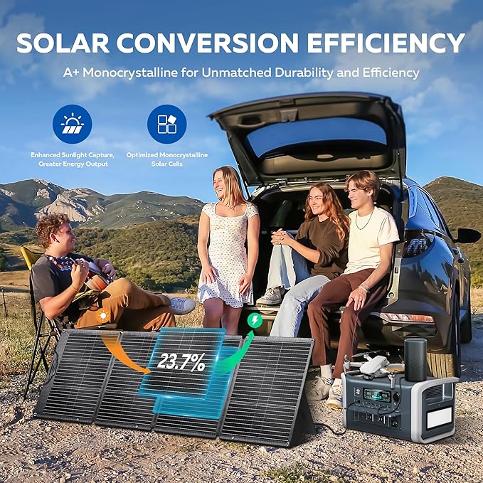 - [Perfect for Outdoor Adventures & Emergency Backup]: Whether you're camping, RVing, or preparing for emergencies, this bundle has you covered. The solar panel is lightweight and foldable, while the power station supports multiple charging methods, making it ideal for various outdoor scenarios.