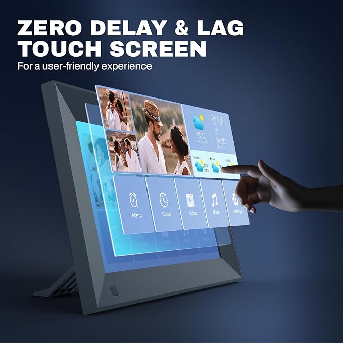 - Amazing Multi-functionality: ① The photo frame is equipped with a touch screenl for easier operation, perfect for the non-tech savvy and the elderly. ② Captions are displayed at the bottom of the photos. You can record the story of what happened at that time for each photo. ③ Other functions such as background music,sleep mode, image zoom, adjustable brightness, slideshow mode, playback order adjustment, etc.