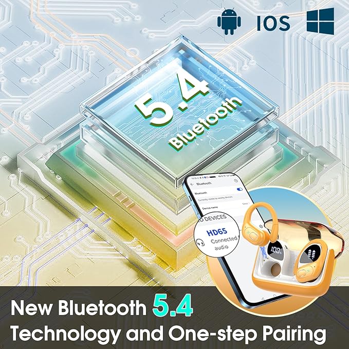 - Leading Bluetooth 5.4 Technology and Easy Pairing: Features with the advanced Bluetooth 5.4 chip technology, Aptkdoe HD65 wireless headphones support HFP A2DP HSP AVRCP, which provides instant pairing and stable transmission without interruptions, with a stable connection distance of up to 33ft. The moment you open the case, the earbuds instantly and effortlessly pair with your previously connected device, sparing you from the hassle of manual pairing and long connection times.