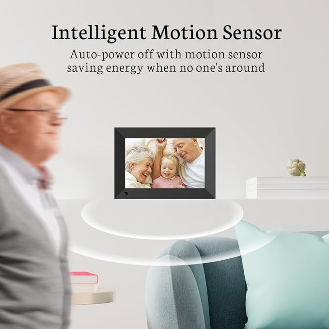 - All-In-One Digital Picture Frame for Gifting: BSIMB digital frame designed with multi-functionalities. 1. Explore customisable settings including photo captions, weather and clock, slideshow mode, motion sensor, sleep mode and more. 2. Perfect gift for families and friends on big days, such as wedding, birthday, Christmas, Mother’s Day and so on