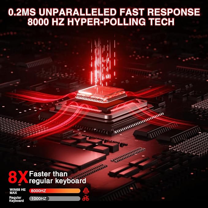 - Fast Trigger Gaming Keyboard: AULA WIN68 HE MAX magnetic gaming keyboard offers an industry-leading 8,000Hz polling rate and 8x faster response time than traditional mechanical keyboard. Combined with ultra-low latency (0.2ms), it ensures your commands take effect instantly, giving you an edge in the game. The fast trigger keyboard is perfect for gamers and coders, greatly enhancing the gaming experience and work efficiency.