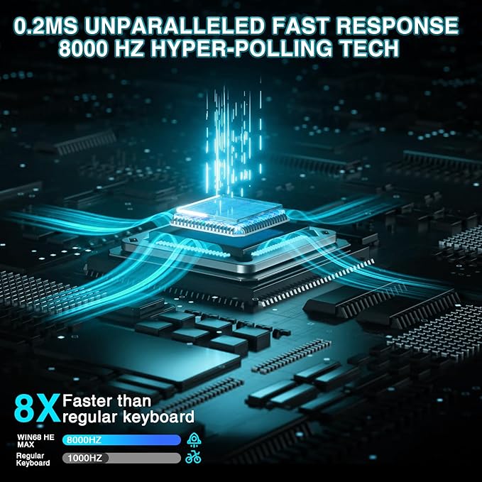 - Fast Trigger Gaming Keyboard: AULA WIN68 HE MAX magnetic gaming keyboard offers an industry-leading 8,000Hz polling rate and 8x faster response time than traditional mechanical keyboard. Combined with ultra-low latency (0.2ms), it ensures your commands take effect instantly, giving you an edge in the game. The fast trigger keyboard is perfect for gamers and coders, greatly enhancing the gaming experience and work efficiency.