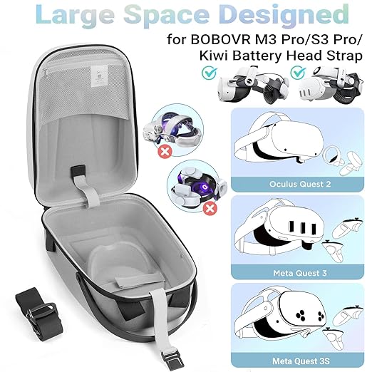 - Specially Designed for Quest 2/Quest 3 -- Custom Oculus Meta Quest 2/Quest 3 hard carrying case designed keeps all in one VR headset and accessories organized,compatible with official elite batteries, fits 90% of third party VR headstrap.