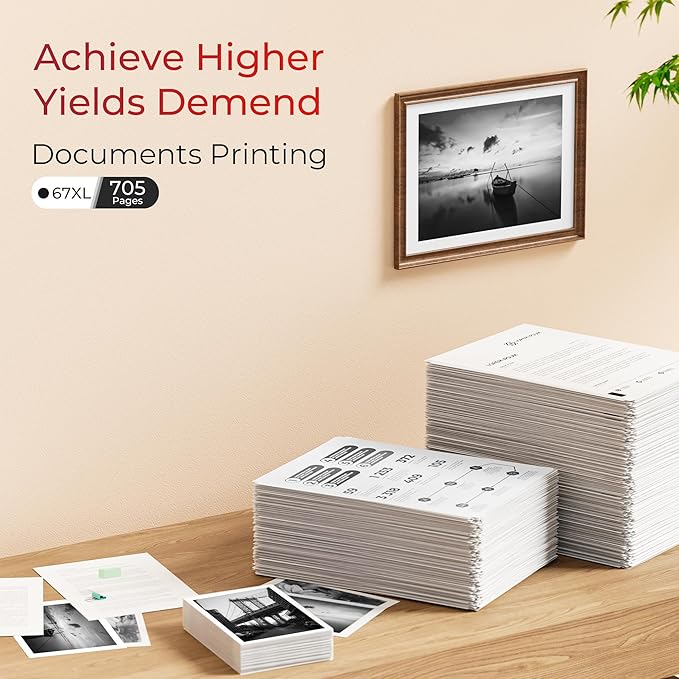 - High Yield: Up to 705 pages per for hp 67xl black ink cartridge at 5% coverage (A4 paper size)