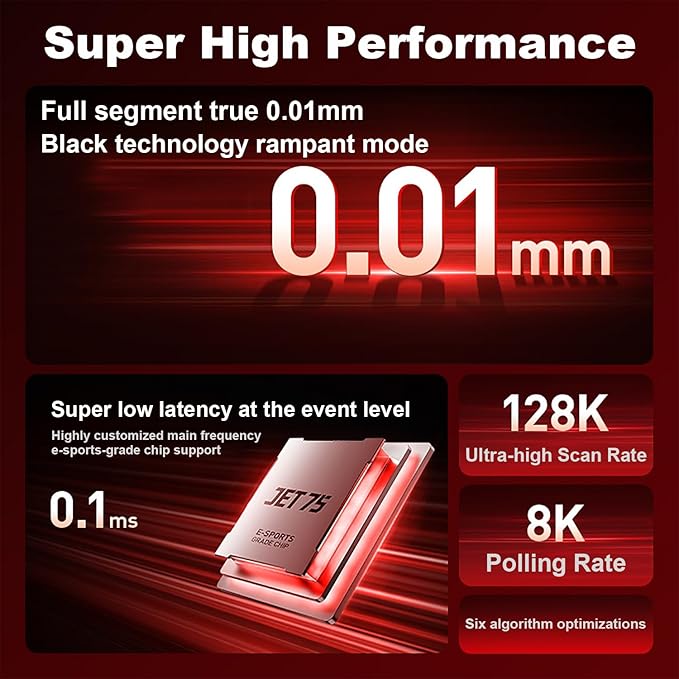 - E-Sports-level High-performance Gaming Keyboard: With the support of customized high-frequency e-Sports-level chips, the Jet 75 can reach 8K polling rate + 128K ultra-high scan rate + 0.1ms competition-level ultra-low latency