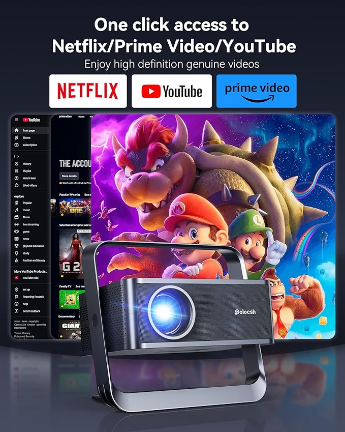 - [Officially Certified Apps Projector] Polocsh Smart projectors are equipped with intelligent Linux system with regularly maintains and updates the apps to ensure you have the latest features, while also providing comprehensive security and stability. Access multiple apps and millions of streaming services at the touch of a button to seamlessly watch your favorite shows and movies.