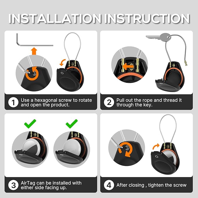 - Secure and Durable Build: The Airtag case features a secure hexagon socket screw and braided steel cable, ensuring a strong grip. Its durable construction prevents slips or damage, offering lasting protection for your belongings