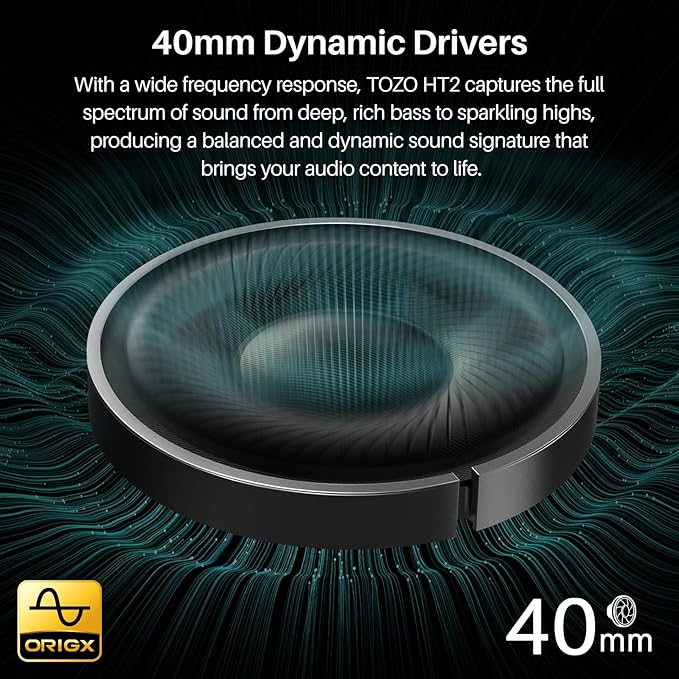 - [Both Wired and Wireless Connections] Equipped with dual 40mm drivers, TOZO HT2 bring you superior Hi-Res audio sound with a well-balanced deep bass, make you have a better listening experience. Plus, it breaks the single connection method, support both wireless and wired connection. When with wired connection, custom oversized 40 mm dynamic drivers produce Hi-Res sound for extraordinary clarity and detail.