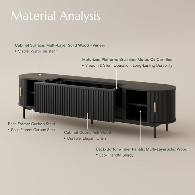 102" Ultra Short Throw Projector TV Stand, Mid-Century Modern Electric Cabinet with Linkage Memory Function and Ample Storage Space, Wood Entertainment Center, Anti-Pinch Design, Black