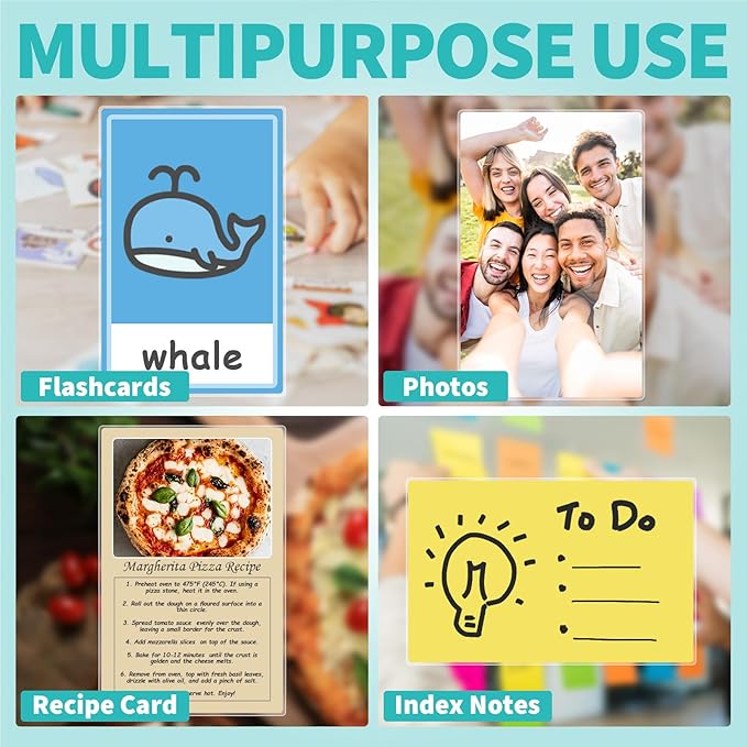 - 【Multipurpose Protection】 These small laminating sheets help preserve commonly used materials like vocabulary cards, labels, reference notes, and name badges. Whether in classrooms, kitchens, or toolrooms, they protect against spills, dust, and surface wear—keeping your content organized and easy to reuse.