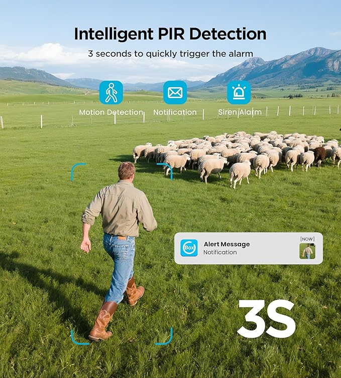- 【IP66 Waterproof & Smart Storage】This waterproof security camera has IP66 waterproof rating. The waterproof and dustproof housing is specially designed for outdoor use without fear of any weather, suitable for any place without internet or electricity: farms, garages, roads, doorways. The cameras without wifi needed offers cloud storage and SD card (not included) local storage options, most flexible according to your preference. For further support, you can always contact us for help.