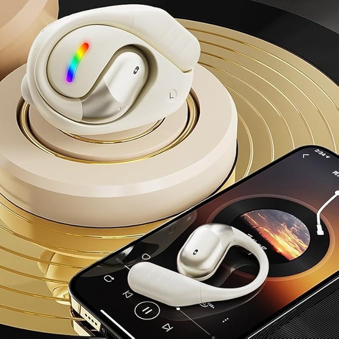 - 1. Visual Tech Innovation:the storage and charging compartment has a unique design, adopting a cochlear style magnetic suction storage design, equipped with colorful breathing lights, which can tell the status of the wireless earphones according to the changes in lighting. The volume of the magnetic charging compartment is 2/3 of that of ordinary open ear earbuds, making it convenient to store and carry. → Unique design of charging compartment, strong magnetic adsorption of open earphones.