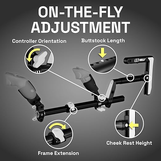 - Full Adjustability (tool-free, fast, ergonomic): Instantly modify stock length, controller angle, and pitch without tools or removing your headset. OneStock’s ergonomic, tool-free design adapts on the fly for maximum control and comfort during intense VR FPS gameplay.
