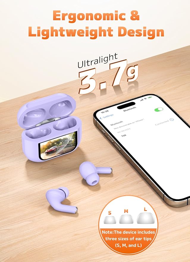 - Next-Gen Touchscreen Earbuds for Seamless Control: Wireless earbuds featuring a Smart Multifunctional Touch Screen Charging Case offer a revolutionary listening experience. Unlike traditional models, noise cancelling earbuds with this design let you control volume, skip tracks, manage calls, set alarms, and even locate your ear buds—all directly from the case, no phone needed. A smarter, more convenient way to stay in control