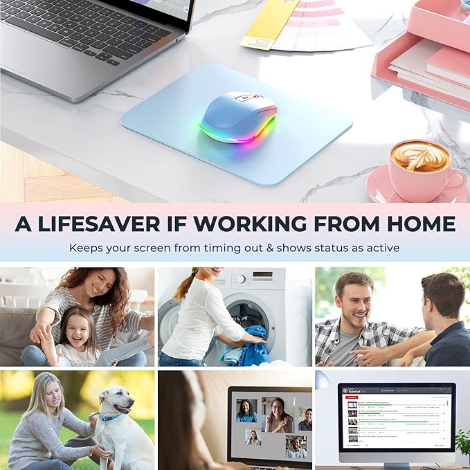 - Light Up Mouse & Mouse wiggler 2 In 1 -- If you working from home and was tired of being a slave to your computer, this mouse and jiggler in 1 could be your choice, just press and hold the DPI button 3-5seconds to set it on jiggler mode to keep your computer from locking when you have to step away